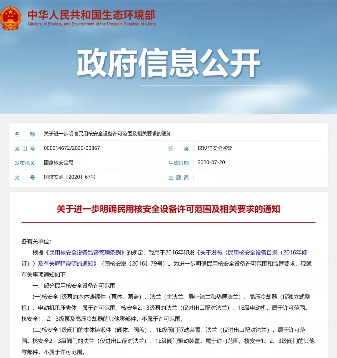 原標題:關于進一步明確民用核安全設備許可范圍及相關要求的通知